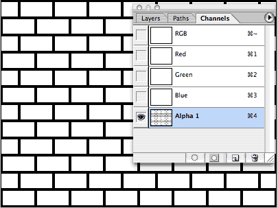 Hold down the ctrl/Cmd key and click on the alpha 1 thumbnail – You should see a selection around the shapes of the bricks