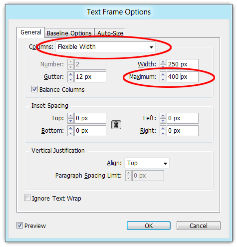 Wouldn’t it be great if, as you changed the size of the frame, the widths of the columns adjusted? Now they can. Just set the default width for a column and should you need to adjust the width of the frame the column widths will adjust accordingly. This ties in nicely to alternate and liquid layouts where you could have a portrait and landscape orientation in one file. — Bob
