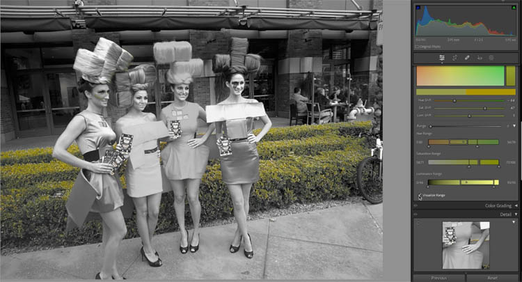 Click the visualize Range box, or hold down Alt/Option as you move a slider to see the area that’s being changed. On the effected area will appear in color.