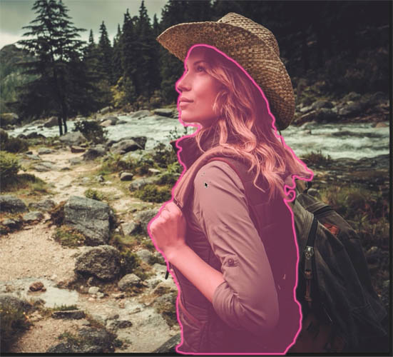 Notice the woman is adjusted, but her backpack doesn’t match the photo, because it wasn’t part of the selection mask,