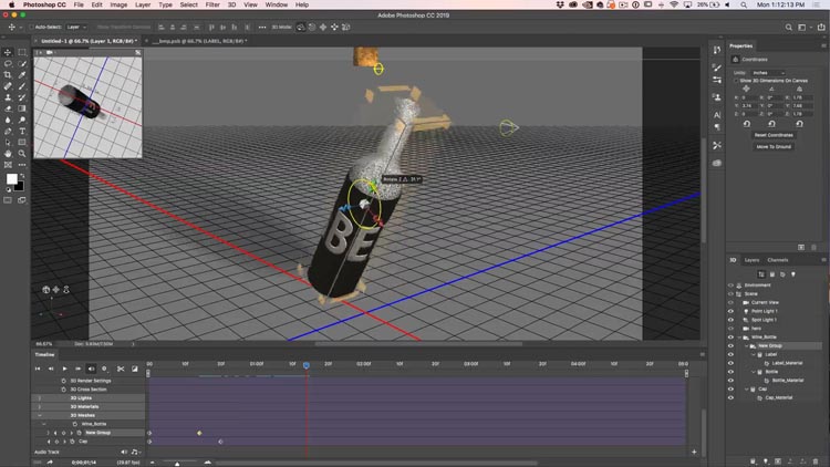 Use the rotate tool to rotate the bottle. A keyframe will be created.