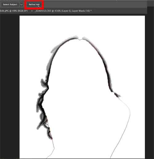 The algorithm in Photoshop will try and mask the hair in this edge.