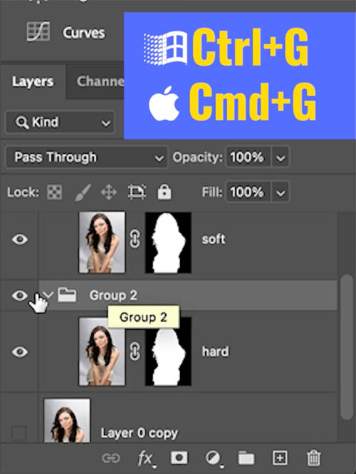 Click on the Hard layer and press Ctrl/Cmd+G to make a group.