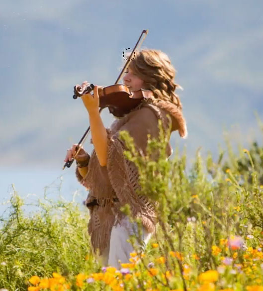 Let’s start with this photo I shot of musician, Taylor Davis. Notice that Taylor is in focus and the foreground and background are out of focus. We want to sharpen the in focus area.