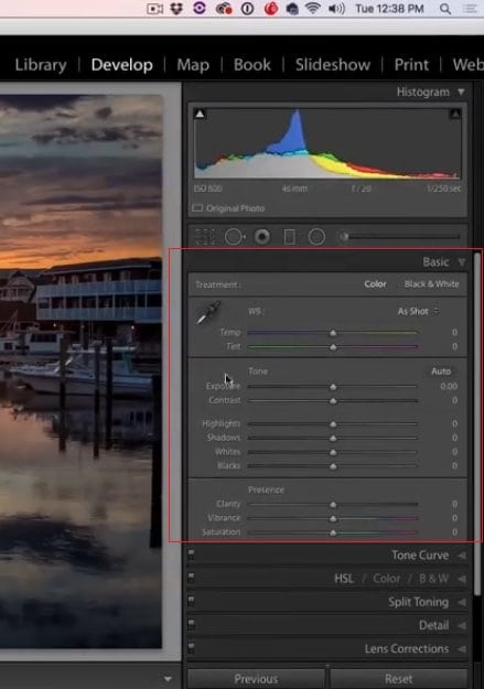 Note: You can alternatively make a preset and apply it to the video. All the Lightroom presets will work on the video (Just remember there are certain settings that don’t work on video, such as ones that warp the frame like upright etc.