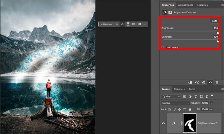 As soon as you start to paint, you will get a second Brightness/Contrast adjustment layer