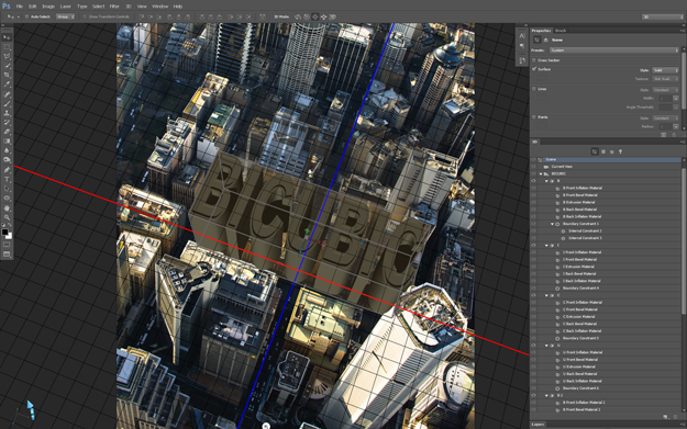 This tutorial will demonstrate some of the new 3D features and workflows available in CS6. For the project, we took some inspiration from the Inception movie posters and decided to spell the word Bicubic in large letter shaped buildings within a city. (Because the bicubic smoother interpolation is used for enlarging images in Photoshop!) Fair warning, this tutorial does contain some rather advanced compositing steps that are aimed at the more experienced user, but those are not the focus of the project. The primary point is to explore the 3D features and workflow, so most of the instruction is spent on those steps.