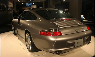 Rotate the selection so that the oval falls on the car at an angle as shown