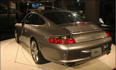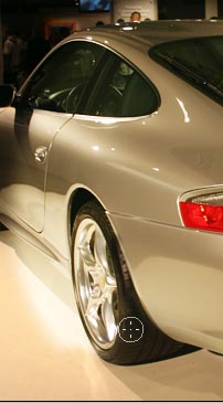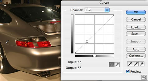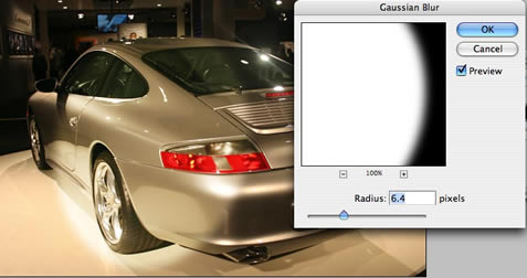 Take this picture of a Porsche as an example, it is a little bit underexposed and could be touched up with just a little bit of levels or curves. Instead of just brightening the image which would be our natural instant, let’s create a bit more interest and instead create a spotlight effect.