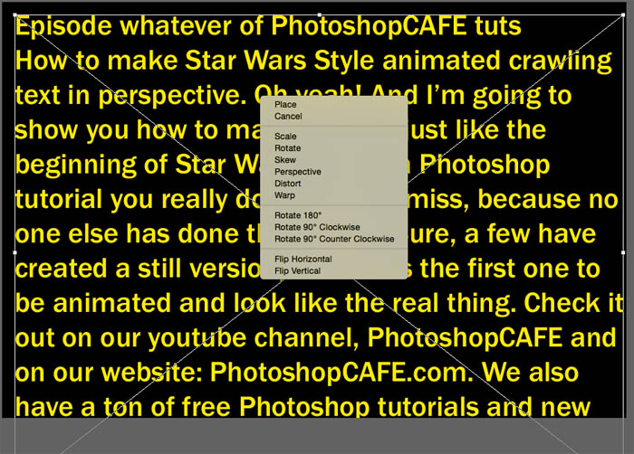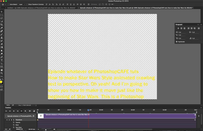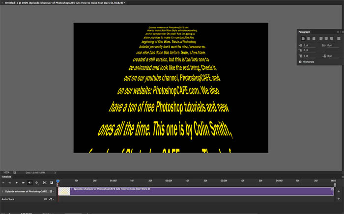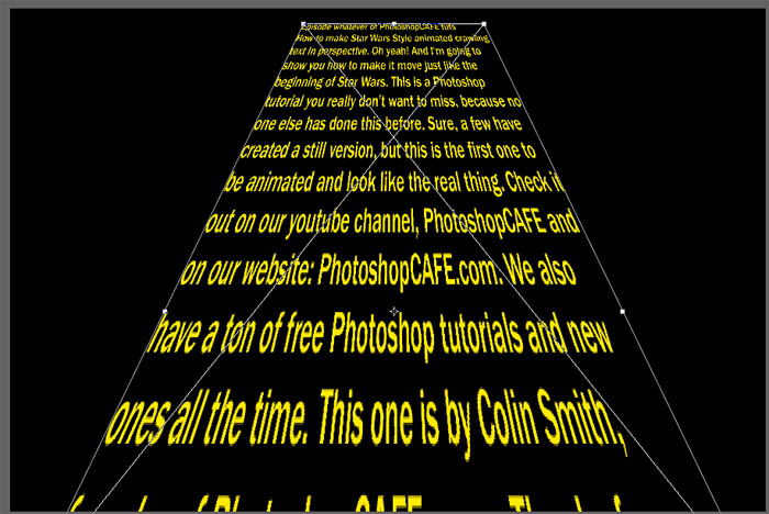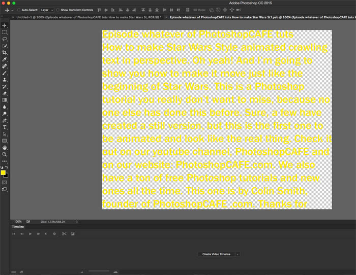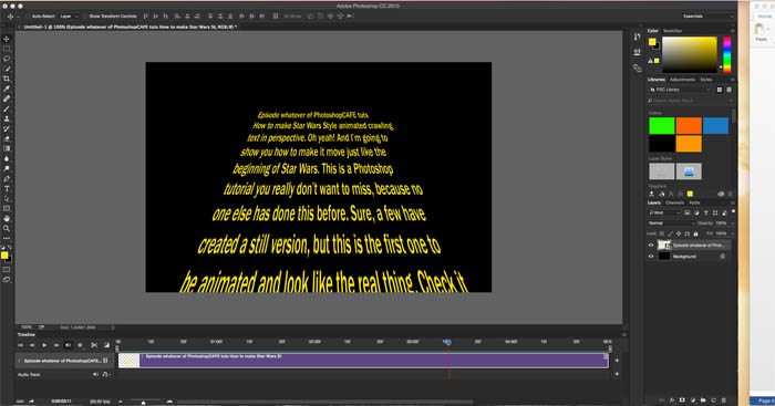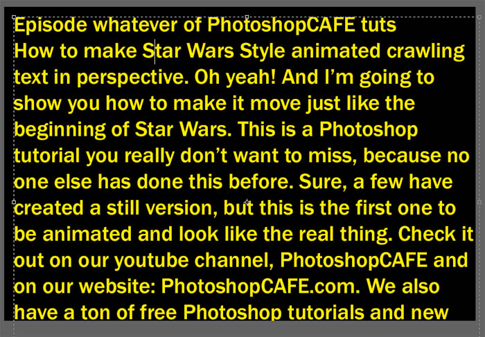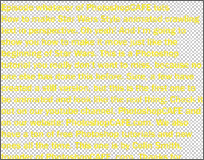 In this Photoshop tutorial, I’m going to show you how to create the title to Star Wars. We are going to make the perspective text and actually animate it, so that it moves just like at the beginning of all the Star Wars movies. We are going to do all of this in Photoshop CS6 or Photoshop CC. If you have an earlier version of Photoshop, you can still make the text effect, but you will need CS6 or CC to make the animation.