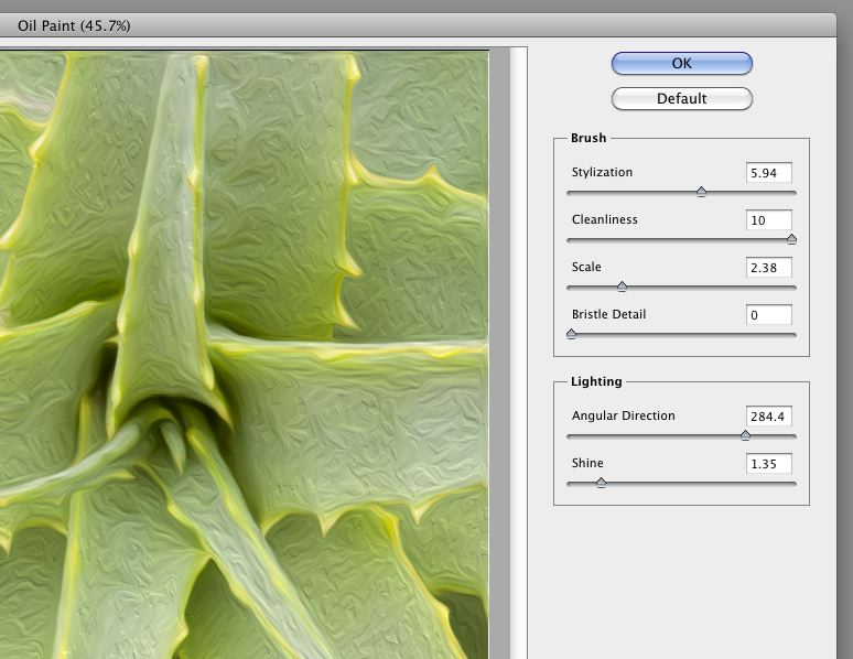 With this update on performance also comes a new filter, Oil Paint. Oil Paint offers photographers and artists a nice starting point when turning photos into paintings. The interface enables you to vary the level of stylization and cleanliness (smoothness) of the virtual brush being applied, as well as a variety of depth, detail and lighting effects. All based on a combination of sliders. Once you’ve created a base layer for your painting in the Oil Paint interface, you can make it your own by applying a personal touch with the bristle tips brushes (which mimic traditional media) introduced in CS5.